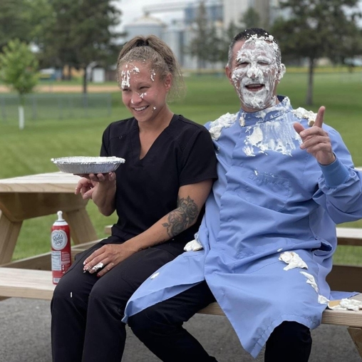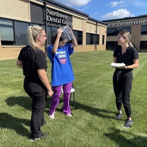 Northwest Dental Group worked with the Jeremiah Program in April of 2022 with a goal to raise funds for this non-profit organization. They have facilities in five different states all across the US working to support single-parent families. They opened their Rochester campus in July of 2020 to 40 single mothers and their children. In total, they have supported more than 150 local families! In order to raise funds, there were individual boxes for each doctor that both staff and patients could donate money into. Whichever doctor raised the least amount of money in their box received a pie to the face! (Their assistants had too much fun with this part!)